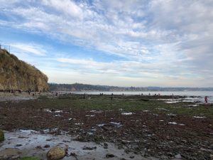 My wife and I decided to take the kids for the walk, because this kind of super-low tide doesn’t happen every day. The weather was fine, just a tad under 60 degrees, with scattered high clouds. We started off from New Brighton Beach around 1 PM, with the lowest tide to come at 4:18 PM.