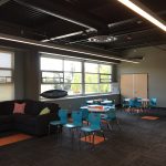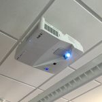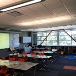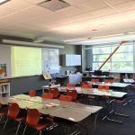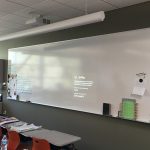 Each classroom features a long whiteboard, onto which can be projected the output from AppleTVs, Chrome Casts, or a scanner on the teacher’s desk for projecting old-fashioned printed material. Teachers can write all over the white board with old fashioned dry erase markers as well, combining the best of “old school” and new technologies.
